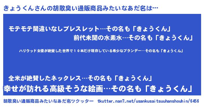 | 意味不明あだ名 | 『住所不定無職きょうくん(84歳)』 |