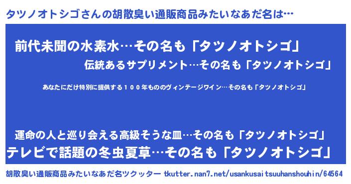 | 意味不明あだ名 | 『住所不定無職タツノオトシゴ(12歳)』 |