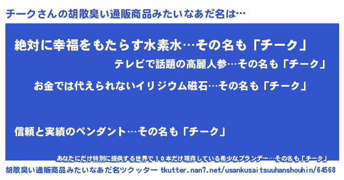 | ポケモン風あだ名 | 『チックウザ』『ゼニチー』 |