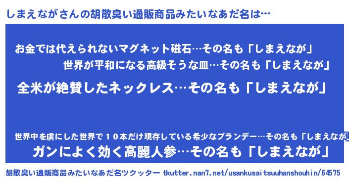 | 欧米人風あだ名 | 『ウサインしまえなが』 |