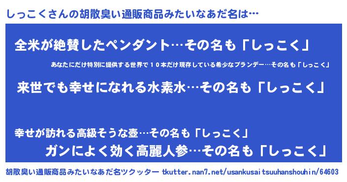 しっこくさんの胡散臭い通販商品みたいなあだ名をツクッター!