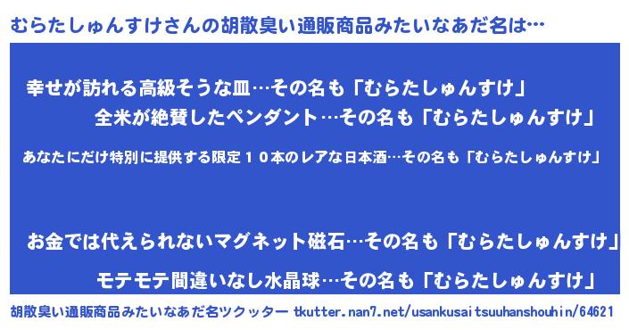 | 意味不明あだ名 | 『住所不定無職むらたしゅんすけ(14歳)』 |