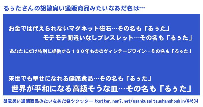 | 意味不明あだ名 | 『住所不定無職るぅた(9歳)』 |