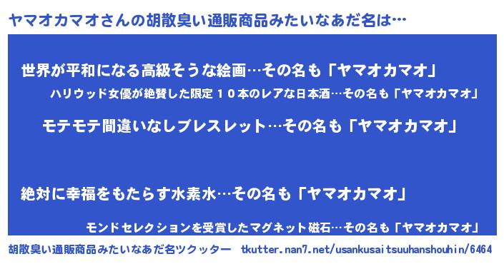 | ヘコむあだ名 | 『ヤマにー』『なまこ酢』『ヤマお』 |