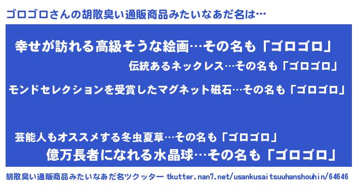 | ヒーロー風カッコイイあだ名 | 『慈愛の使者ゴロゴロ』『幻影騎士ゴロ』 |