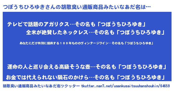 | 男性向けラノベタイトル風あだ名 | 『この素晴らしい世界につぼうちひろゆきを!』 |