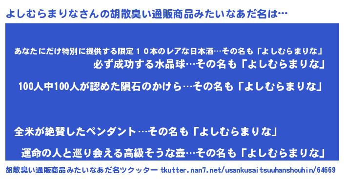 | 肩書あだ名 | 『よしむらまりなプロデューサー』 |