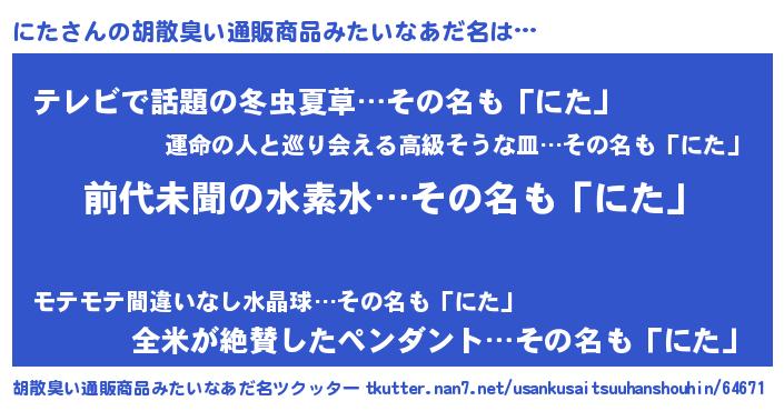 | ヘコむあだ名 | 『にた(遠い目)』『にたっ子』 |