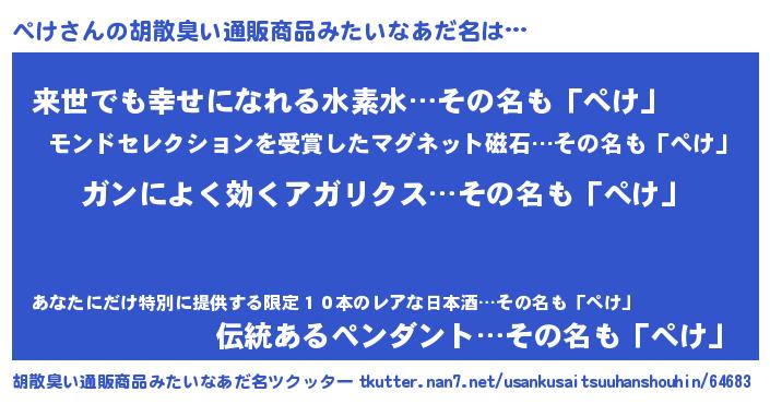 | ヘコむあだ名 | 『ぺけ(笑)』『ぺけぷりん』 |