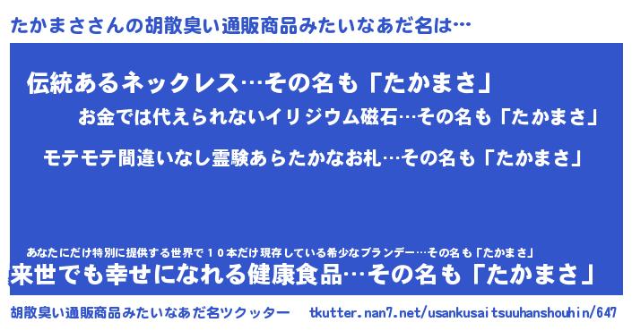 | 意味不明あだ名 | 『ペロリンたかまさ』『永久保存たかまさ』 |