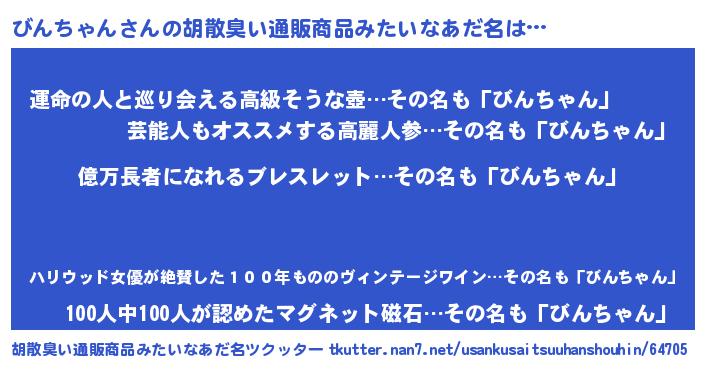 | ヘコむあだ名 | 『びんにー』『酢こんぶ』『びんを』 |