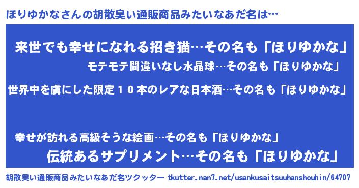 | 意味不明あだ名 | 『住所不定無職ほりゆかな(39歳)』 |
