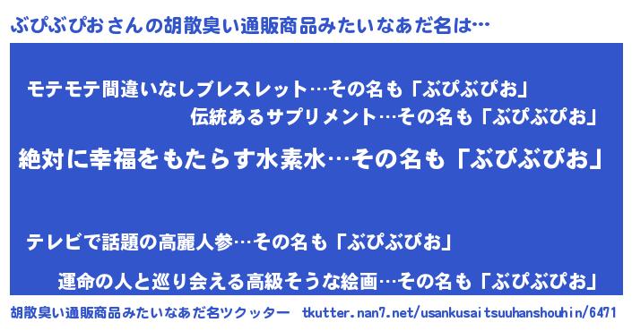 | 意味不明あだ名 | 『永久保存ぶぴぶぴお』『自称ぶぴぶぴお』 |