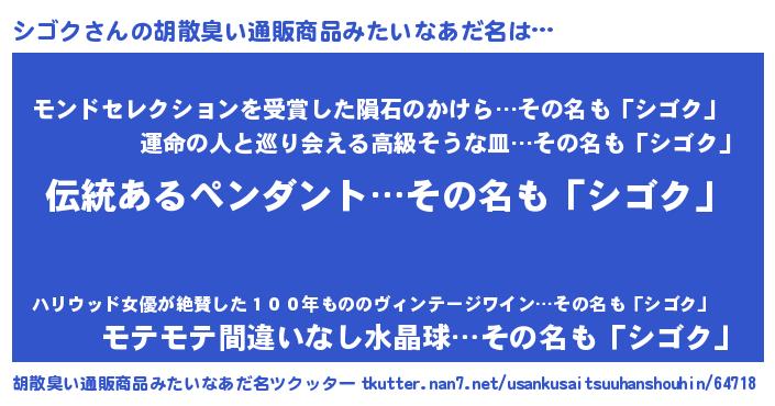 | ピコ太郎風あだ名 | 『シゴ八郎』『シシ太郎』『シコ史郎』 |