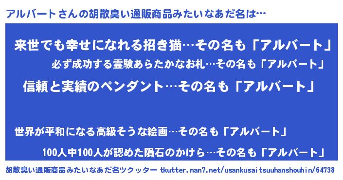 | ヘコむあだ名 | 『アルっぺ』『アルバート(笑)』 |