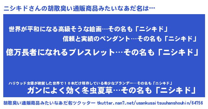 | 意味不明あだ名 | 『ペロリンニシキド』『自称ニシキド』 |