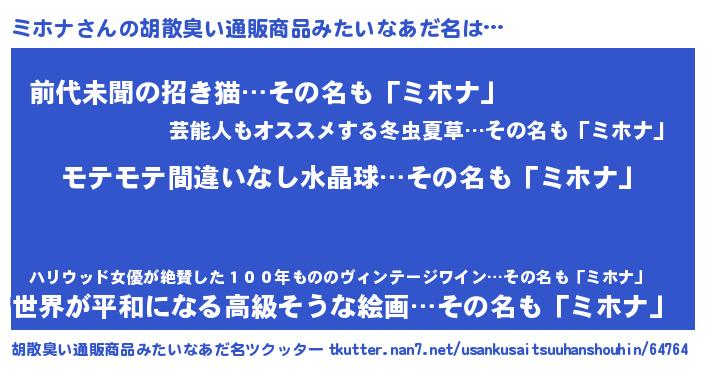 | 意味不明あだ名 | 『ペロリンミホナ』『永久保存ミホナ』 |