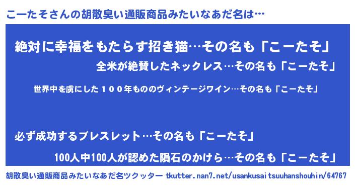 | 欧米人風あだ名 | 『ダレノガレこーたそ』 |