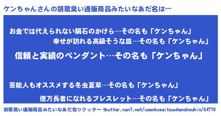 | 恥ずかしいあだ名 | 『ケンリンリン』『ボンバーヘッドケン』 |