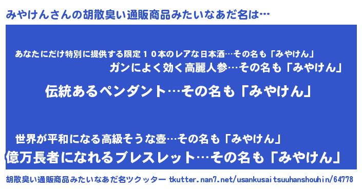 | 意味不明あだ名 | 『とにかく怪しいみやけん』 |