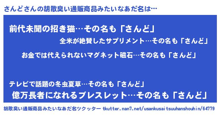 | ヘコむあだ名 | 『さんど(小並感)』『さんふぇ~』 |