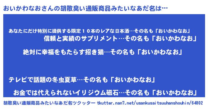 | 意味不明あだ名 | 『永久保存おいかわなお』 |