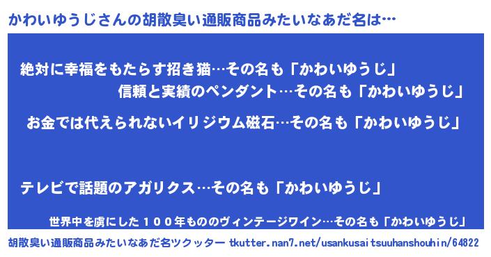 | ヘコむあだ名 | 『かわいゆうじ(笑)』『かわを』 |