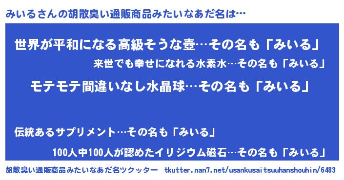 | ヘコむあだ名 | 『みいにゅー』『豆乳』『みいっぺ』 |