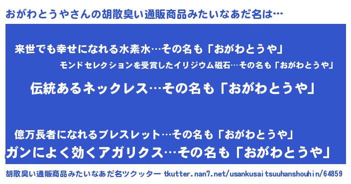 | 意味不明あだ名 | 『とにかく怪しいおがわとうや』 |