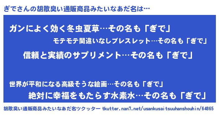 | ヘコむあだ名 | 『ぎでお』『ぎで(遠い目)』『豆乳』 |