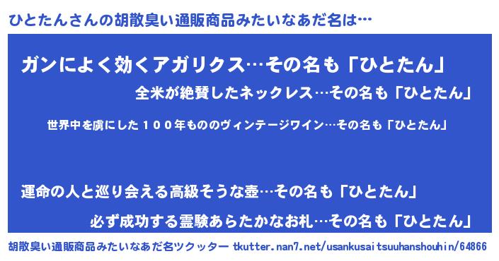 | 男性向けラノベタイトル風あだ名 | 『ひとたんに滅ぼされるだけの簡単なお仕事です』 |