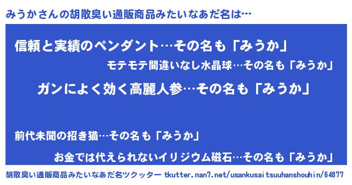 | ヘコむあだ名 | 『みうお』『みうっふぃ~』 |