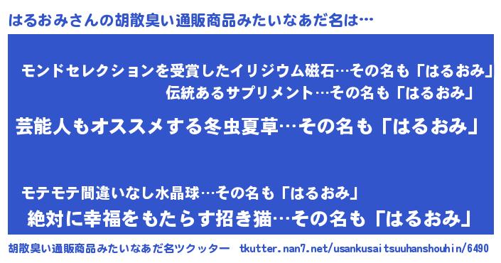 | 意味不明あだ名 | 『自称はるおみ』『永久保存はるおみ』 |