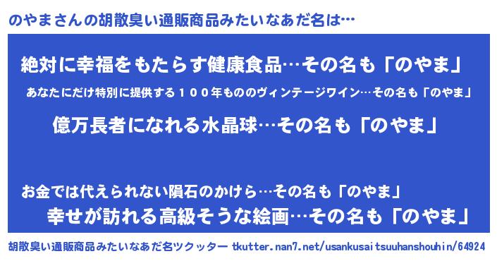 | 男性向けラノベタイトル風あだ名 | 『のやま~年齢イコール彼女いない歴の魔法使い~』 |