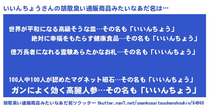 | ヒーロー風カッコイイあだ名 | 『スーパーイインチョウ』 |