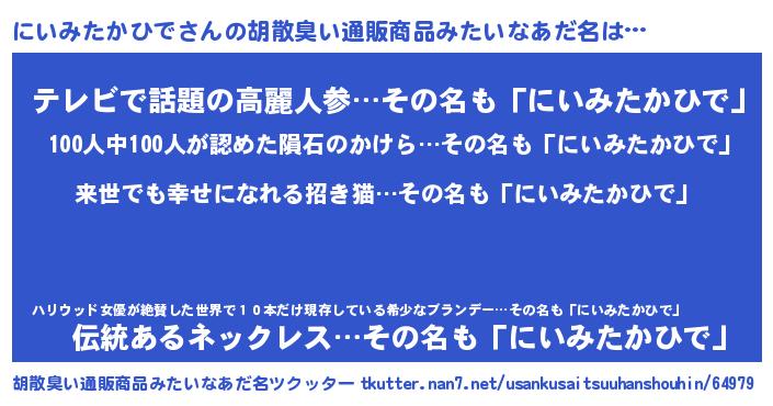 | ヒーロー風カッコイイあだ名 | 『ネオニイミタカヒデ』『黄金騎士ニイ』 |