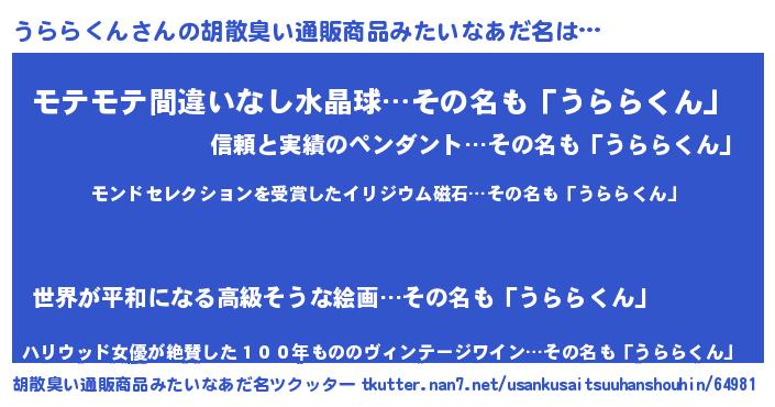 | ピコ太郎風あだ名 | 『ウウ太郎』『ウコ史郎』『ウラ十郎』 |