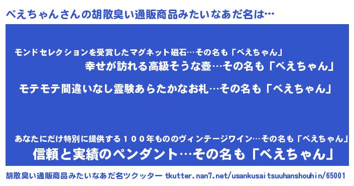 べえちゃんさんの胡散臭い通販商品みたいなあだ名をツクッター!