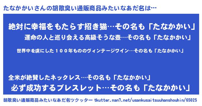 | 意味不明あだ名 | 『住所不定無職たなかかい(10歳)』 |