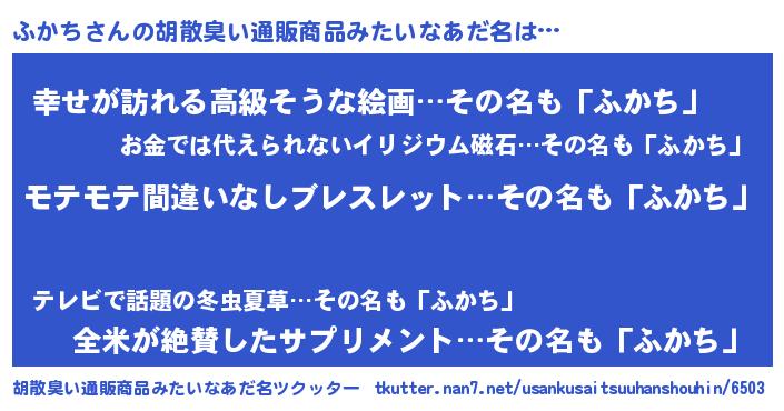 | 意味不明あだ名 | 『ペロリンふかち』『ふかちフォーエバー』 |