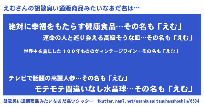 | 意味不明あだ名 | 『住所不定無職えむ(5歳)』『永久保存えむ』 |
