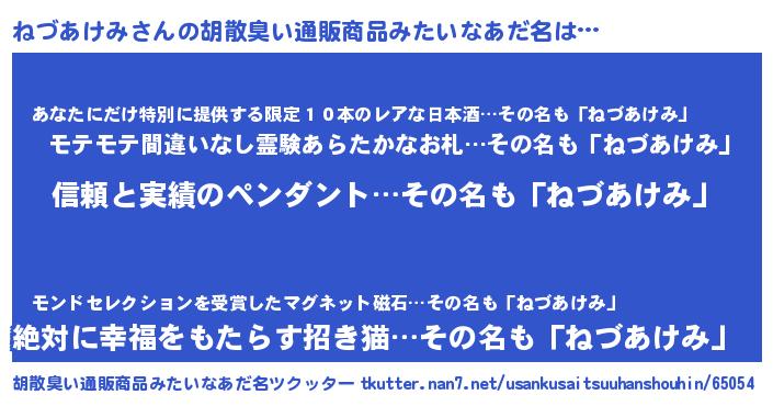 | ヘコむあだ名 | 『ねづっぺ』『ねづあけみ(遠い目)』 |