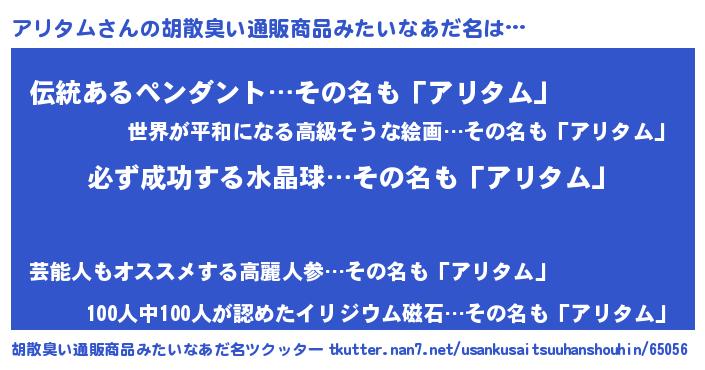 | 男性向けラノベタイトル風あだ名 | 『アリタムの憂鬱』 |
