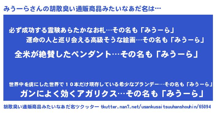 | 男性向けラノベタイトル風あだ名 | 『うちのみうーらが世界を掌握している!』 |