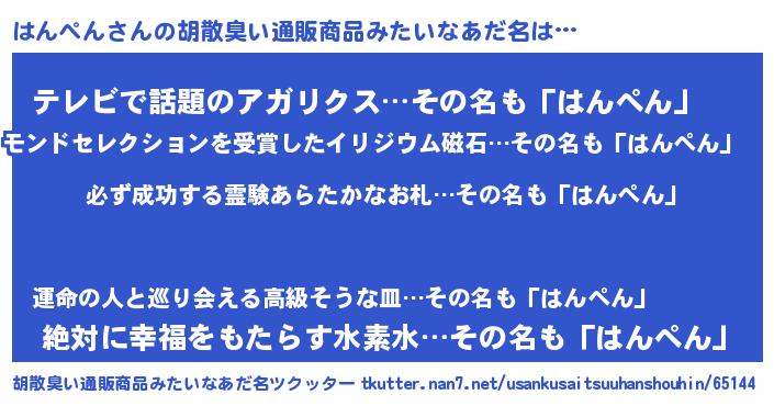 | ヘコむあだ名 | 『はんっふぃ~』『はんぺん(笑)』 |