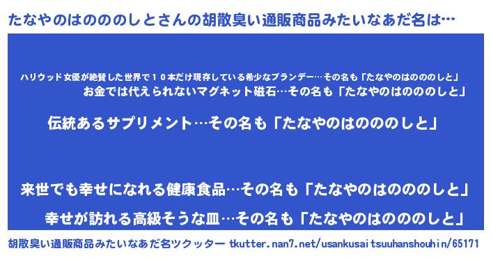 | 男性向けラノベタイトル風あだ名 | 『ダンジョンにたなやのはのののしとを求めるのは間違っているだろうか』 |