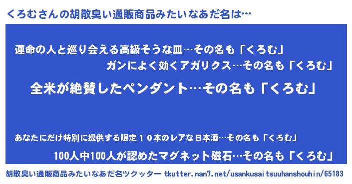 | 意味不明あだ名 | 『とにかく怪しいくろむ』『自称くろむ』 |