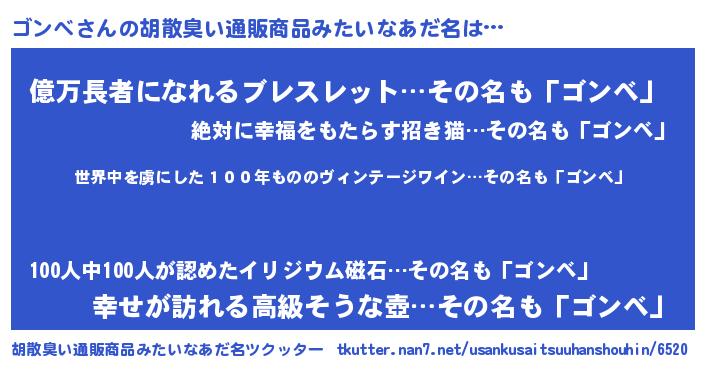 | ヘコむあだ名 | 『ゴンふぇ~』『レバニラ』『ゴンお』 |