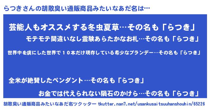| ヘコむあだ名 | 『らつもー』『らつぷりん』『豆乳』 |