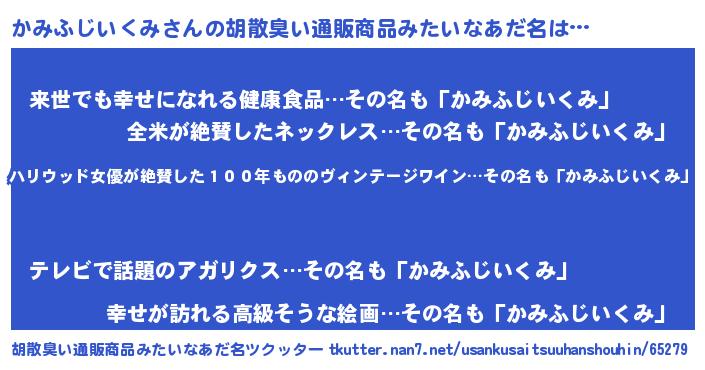 | 意味不明あだ名 | 『住所不定無職かみふじいくみ(6歳)』 |
